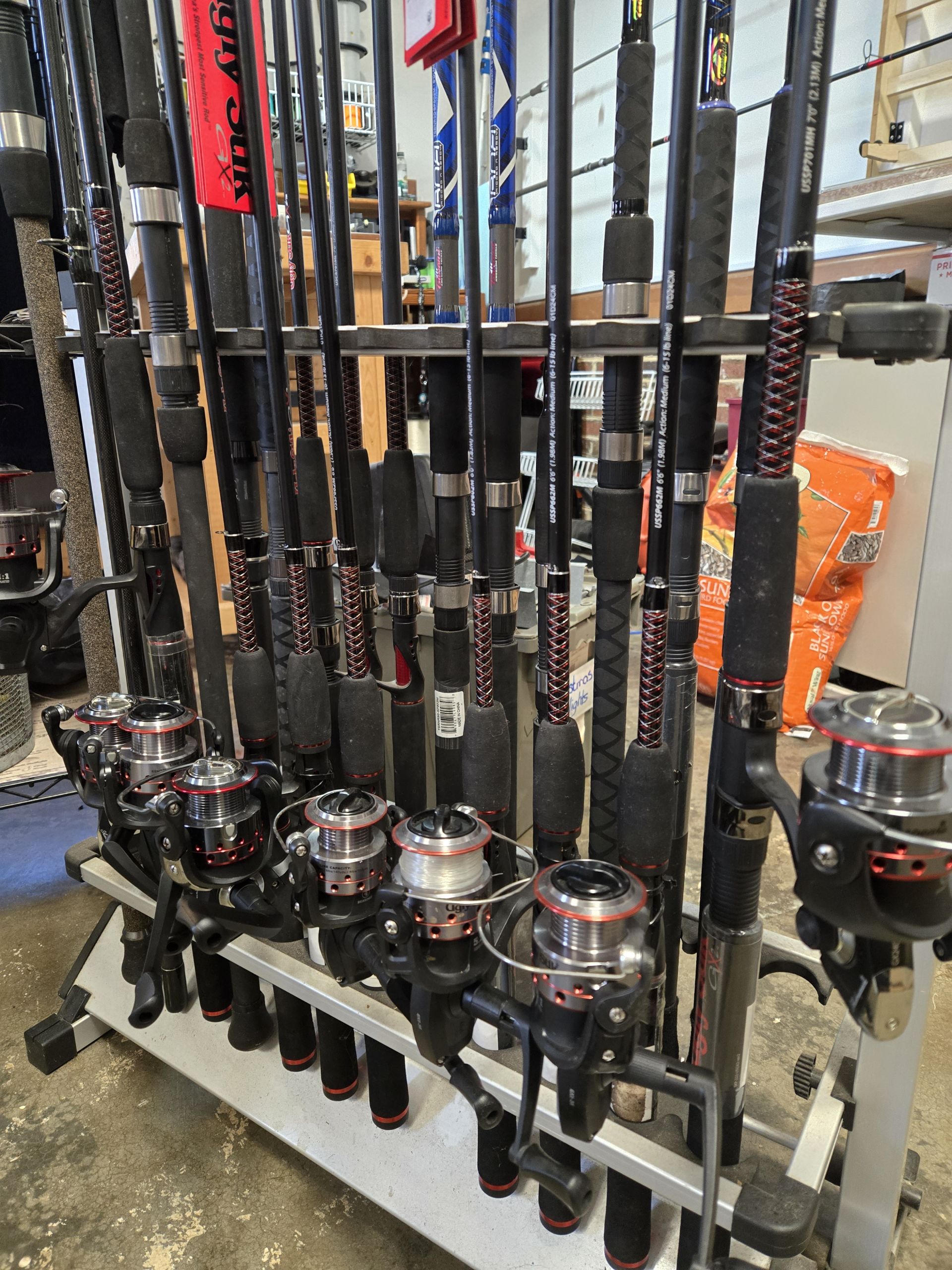 These rods and reels come and go so quickly that it is just not efficient to post them on the website. Call, text or stop by and see what we have. Currently we have Lew’s Smash baitcast combo, Shakespeare combos, Tsunami rods, Okuma bait caster, Penn conventional reels, saltwater boat rods, spinning reels and combos and much more.